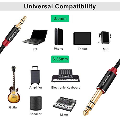 SHULIANCABLE Cavo audio jack 3,5mm a 6,35mm, per Collegare Smartphone, Tablet, Amplificatore, Mixer Audio, Chitarra, etc (1M)