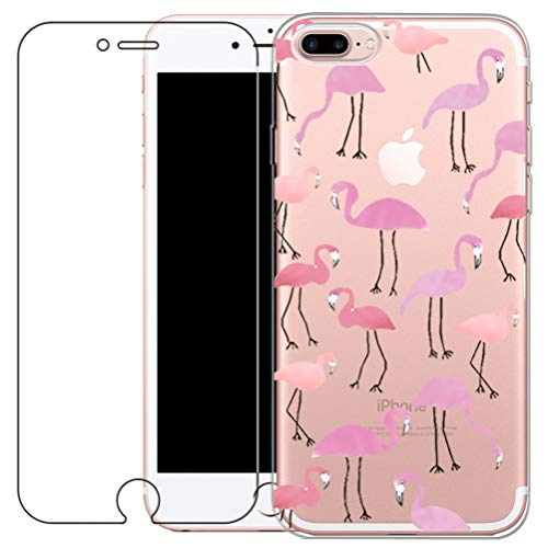 Shumeifang Compatibile con custodia iPhone 7 Plus / 8 Plus, Crystal Clear Silicone Gel Gel TPU con proteggi schermo in vetro temperato per iPhone 7 Plus / 8 Plus - Flamingo