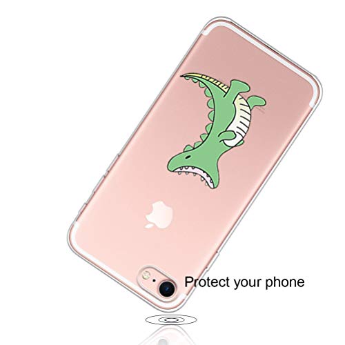 Shumeifang Compatibile con custodia per iPhone 7/8 / SE 2020, Crystal Clear Silicone Gel Silicone Gel TPU con protezione schermo in vetro temperato - Coccodrillo verde