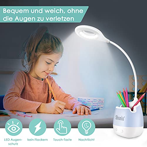 Shuniu Lampada da scrivania a LED per bambini, pieghevole 360°, lampada tavolo con 20 LED, lavoro, studio, comodino 3 livelli di luminosità, luce notturna RGB supporto cellulare