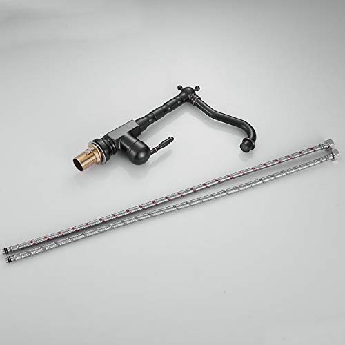 SHUNLI Rubinetto per lavello da cucina in ottone, a olio in bronzo nero, rubinetto da cucina anticato, rubinetto monocomando per cucina/bagno, girevole a 360 gradi