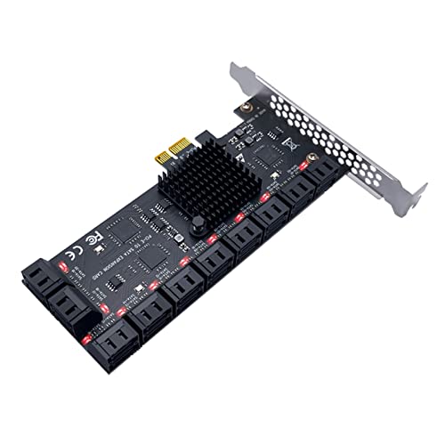 SHUOG Scheda PCIe SATA 20 porte, con 20 cavi SATA 6 Gbps 1X SATA 3.0 PCIe Card, supporto 20 dispositivi SATA 3.0 1X Chia Mining PCI Express RAID Controller (colore: 20 prot x1 e cavo)