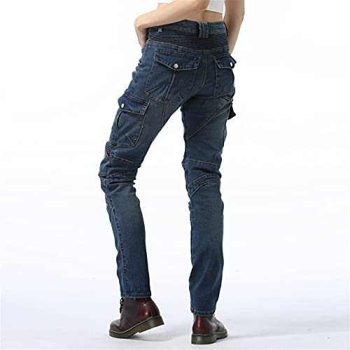 SHUOJIA Donna Pantaloni Da Moto Jeans Stretch Multitasche Protettivi Denim Moto Pantaloni Anticaduta Biker Motociclista Pantalone Con 2 Protezioni Ginocchia E 2 Protettori Anca (Blue,XS)
