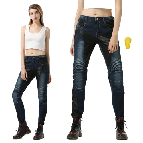 SHUOJIA Donna Pantaloni Da Moto Jeans Stretch Multitasche Protettivi Denim Moto Pantaloni Anticaduta Biker Motociclista Pantalone Con 2 Protezioni Ginocchia E 2 Protettori Anca (Blue,XXS)