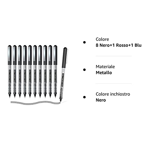 Shuttle Art Penna a Sfera 10 Pezzi, Penna Roller a Inchiostro Liquido Nero Punta Extra Fine 0.5 mm Asciugatura Rapida