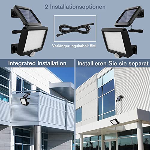 SHUXAG Luce Solare Led Esterno 56 Faretto Led da Esterno IP65 Impermeabile Faretto Led da Esterno con Sensore di Movimento angolo di illuminazione di 120°(cavo 16,5 ft)