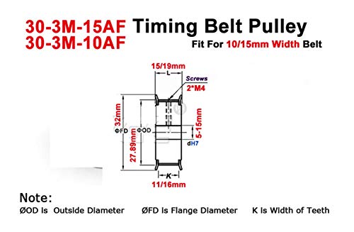 Shuxiang-Cinghia dentata puleggia, 30 Denti HTD3M puleggia sincrona 30t, Foro 5-15 mm, per Larghezza Cintura HTD3M 10 / 15mm, 30t 30Teeth HTD3M Pulley CINTURING Timing, 30-HTD3M AF, Tempo di utilizzo