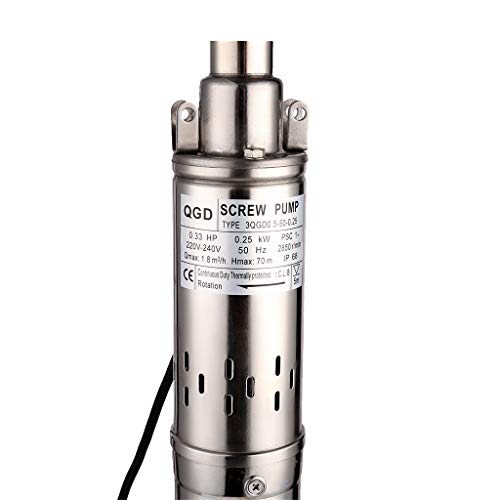 SHYLIYU Pompa Sommersa Per Pozzi Pompa per Pozzi Profondo 220V 1800L/H 0.25KW Pompa Immersione a Vite in Acciaio Inox per Piscina/giardino/irrigazione Aspira Acqua con 20m Cordone