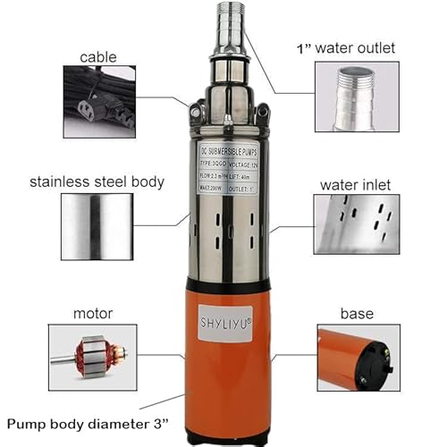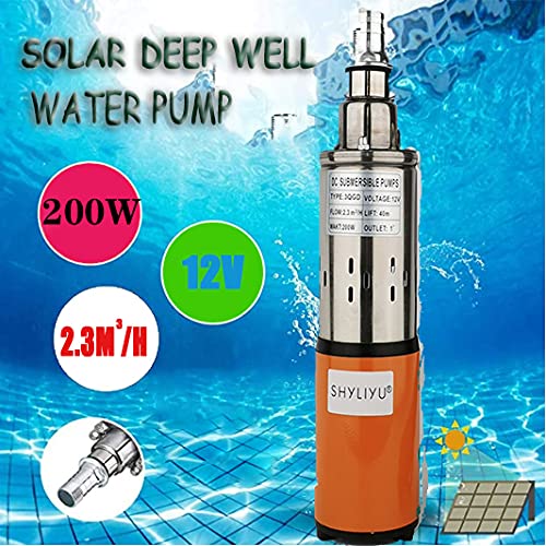 SHYLIYU Pompe sommergibili solari Pompa sommergibile per pozzo 12V DC 200W Pompa a pressione Profondità di immersione massima 40m 2300L/H per acqua domestica Irrigazione del giardino Stagni Fiumi