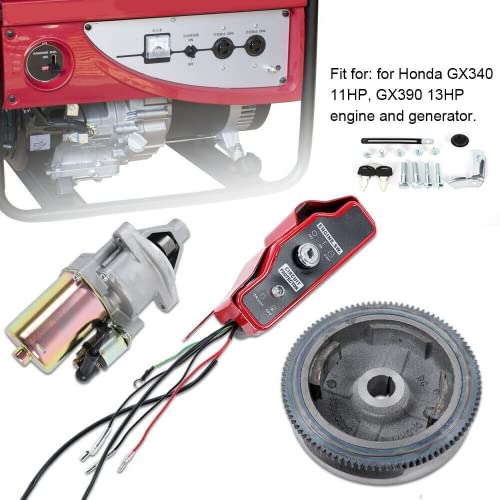SHZICMY Elektrostart Kit Starter Motore Interruttore di accensione Chiave Volano Kit con Ingranaggio Interruttore Volano Elettrico Kit Avviamento Compatibile con Honda GX340/11HP GX390/13HP