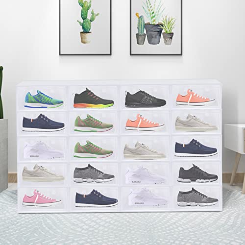 SHZICMY Set di 20 scatole per scarpe impilabili con coperchio trasparente in plastica