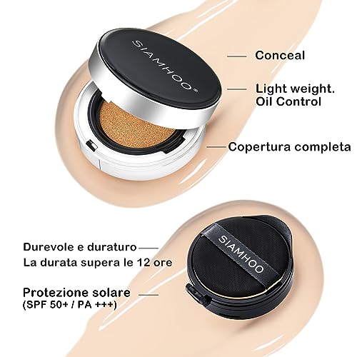 SIAMHOO Air Cushion fondotinta CC crema SPF50+ Copertura completa Leggera di lunga durata Controllo dell'olio per tutti i tipi di pelle, Ricarica Inclusa, 0.53 Oz x 2 (Naturale)
