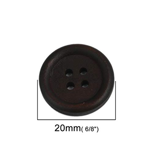 SiAura Material - 100 bottoni rotondi in legno 20 mm, nero marrone, 4 fori, per cucito, bricolage e decorazione