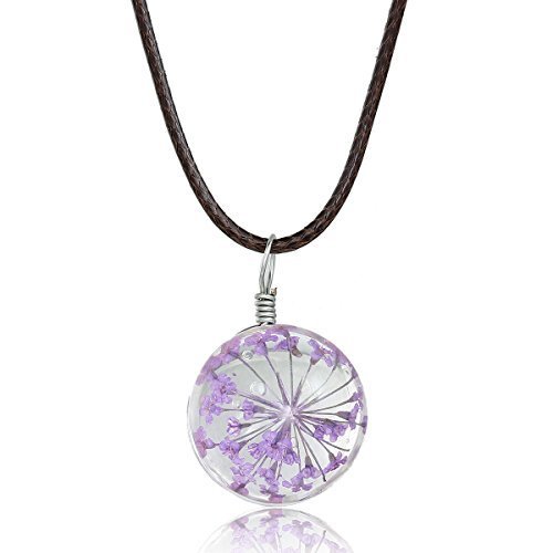 SiAura Material - Lilla secchi Fiore in Sfera di Vetro, Marrone Scuro Filo Cerato 44,5cm Lungo