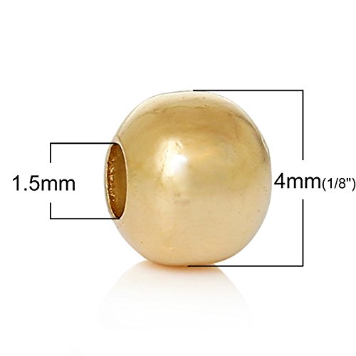 SiAura Material 100 perline di metallo 4 mm con foro da 1,5 mm, rotonde, oro 18 K, per fai da te