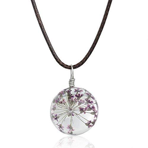 SiAura Material - Rosa Scuro secchi Fiore in Sfera di Vetro, Marrone Scuro Catena di Cera 44,5cm Lungo