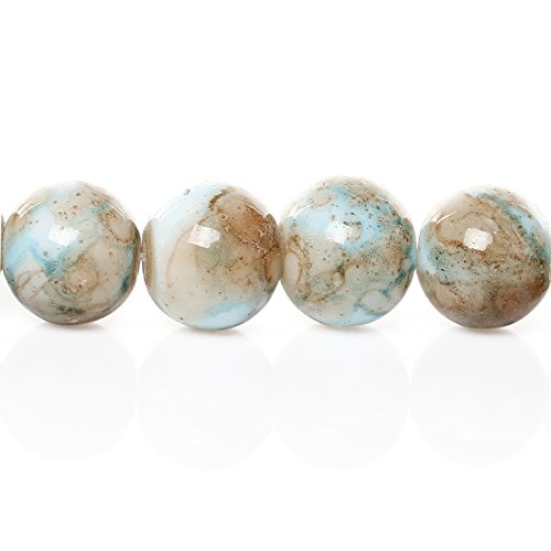 SiAura - Perle di vetro da 10 mm, colore: blu/marrone screziato, ca. 80 perline