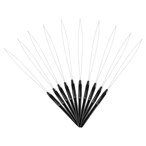 Sibba 10PCS Estensioni dei Capelli Loop Needle Threader Perlina Dispositivo Tirare Gancio Strumento per Micro Links Capelli Piuma Estensioni Kit Capelli Styling Strumenti Accessori Nero