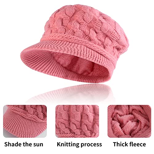 Sibba Cappello Invernale da Donna in Maglia Beanie Cappelli Foderato in Pile Berretto In Lana Lavorato a Maglia Berretto Visiera Berretto Berretto Caldo Cappello da Sci per L'Inverno Rosa Taglia Unica