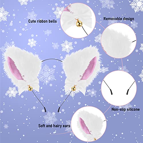 Costume versatile con orecchie di animale per ragazze: set di fasce per capelli e collane bianche adatte per molte occasioni come Halloween, giochi di ruolo, carnevale, Natale, Pasqua, feste di compleanno, feste in costume, feste, club o altri festival