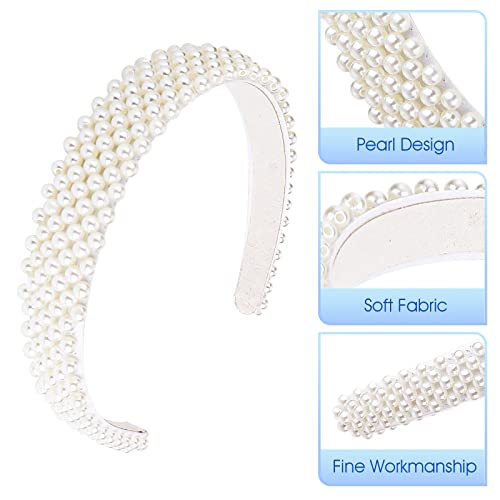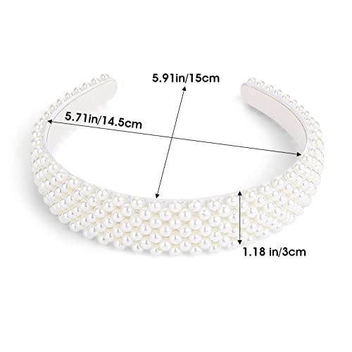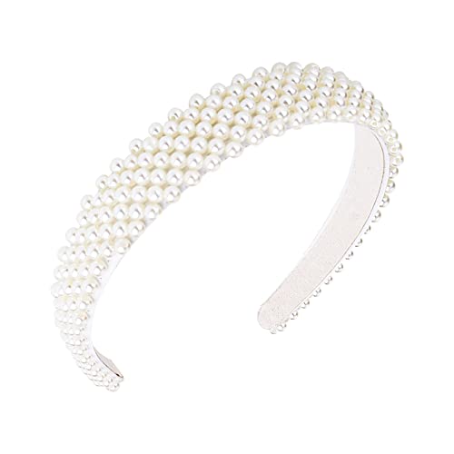 Sibba Cerchietto per Capelli con Perle Bianche e Strass Capelli da Sposa Damigella D'onore da Sposa Ampio Copricapo in Raso Gonfio Elegante Fascia Bling Spessore Accessori Acconciature Ragazze Donne