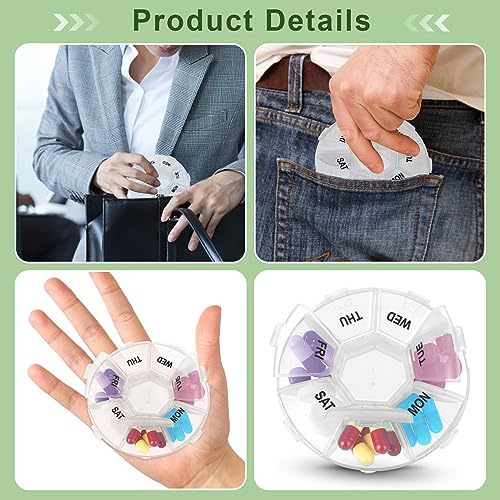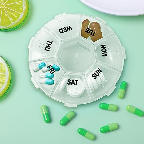 Sibba Contenitore settimanale per pillole, contenitore per medicine, 2 pezzi, integratore giornaliero rotondo carino 7 giorni piccoli coperchi singoli slot dispenser da viaggio scomparti porta farmaci