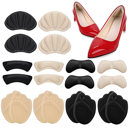 Bella combinazione: riceverai 10 paia di riempitivo per dita in schiuma viene applicato per riempire la punta delle scarpe col tacco alto, 2 paia di fodere per tallone, 4 paia di solette posteriori e 4 paia di tappetini, 2 pezzi di ogni colore, tra cui nero e beige per soddisfare le tue diverse esigenze.