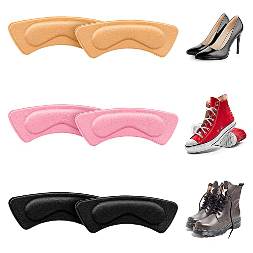Sibba 6 Cuscinetti per Talloni Comodi Rivestimenti Autoadesivi per Scarpe da Ginnastica e Scarpe da Ginnastica con Tacco Alto Scarpe da Donna Bambini Uomini (Colore Pelle E Rosa E Nero)