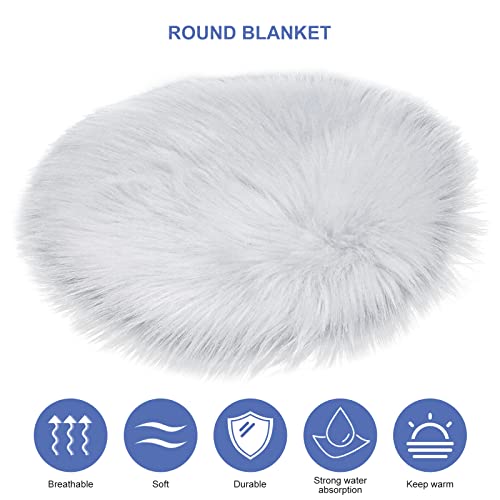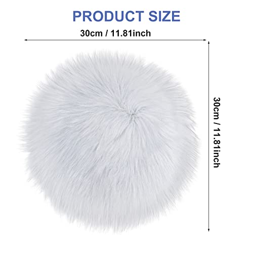 Sibba Cuscino per Sedia in Finta Pelliccia Soffice 30 cm Piccolo Rotondo per Soggiorno Fotografia Sfondo Natalizio Decorazione per Feste di Natale (Bianco)
