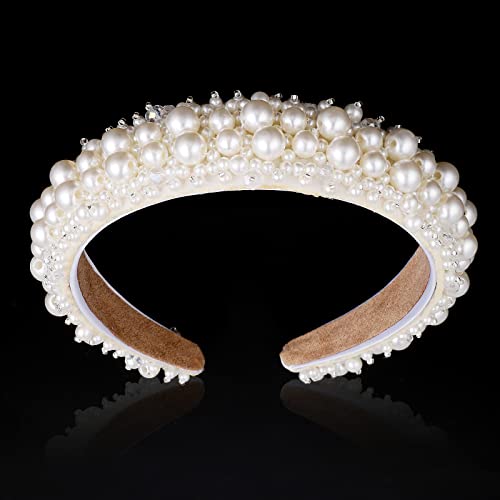 Accessori di perle: riceverai 1 fascia elastica da donna intrecciata. Cerchietto imbottito per abbinare acconciature da damigella d'onore, perfetto per matrimoni e balli