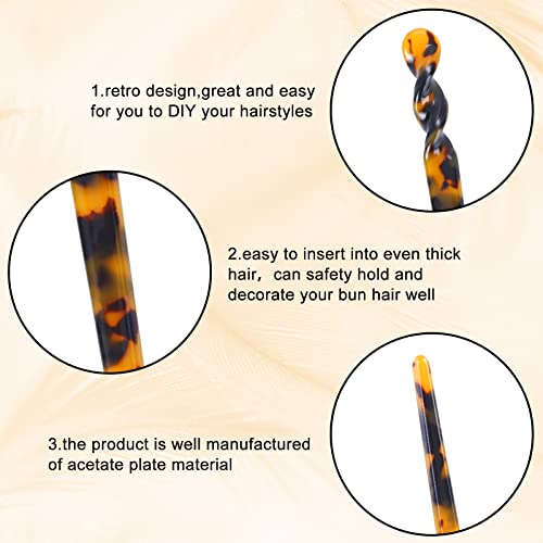 Stile vintage: il design elegante dei bastoncini per capelli in acetato è caratterizzato da classici eleganti motivi a guscio di tartaruga, molto affascinante e bello, può tenere i capelli in modo sicuro. Il bordo liscio lo rende molto facile da scivolare nel panino senza danneggiare i capelli.