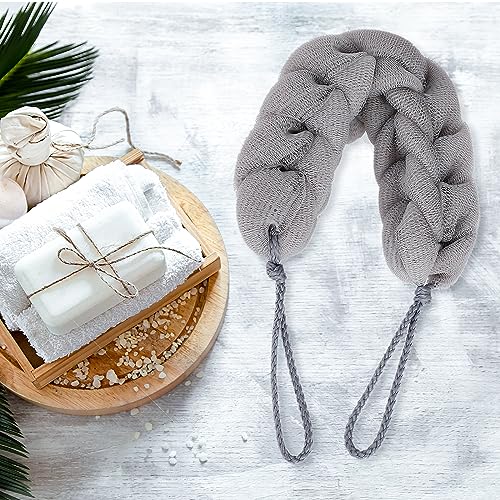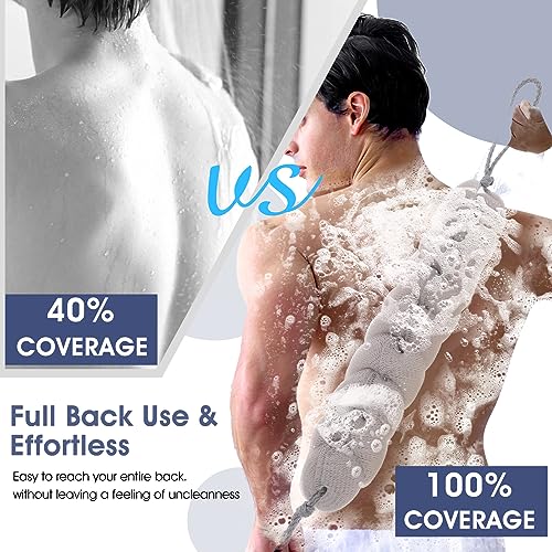Set esfoliante per doccia: il bastone lungo esteso è realizzato in nylon resistente. La spugna esfoliante per il corpo si asciuga rapidamente dopo ogni utilizzo, opzione comoda per la tua routine di bagno quotidiana. Lo scrubber posteriore con manici in corda ha capacità di rimbalzo e allungamento