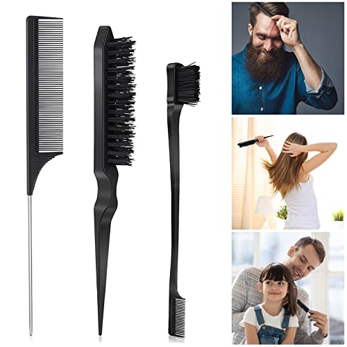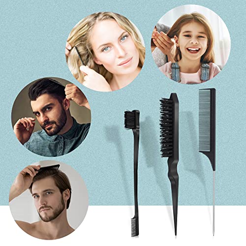 Pettini a coda di topo: riceverai 3 set di spazzole e pettini per capelli, spazzola a doppia testa, spazzola a setole e pettine a coda di spillo, il pettine stuzzicante è adatto per una rapida separazione dei capelli, questo set di pettini ti consente di ottenere un effetto soffice sui capelli