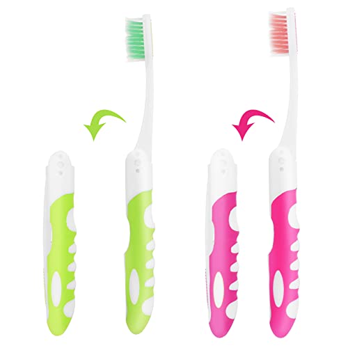 Sibba Spazzolino Da Denti Da Viaggio Confezione Da 2 Spazzolini Da Denti Pieghevoli Portatile Con Setole Morbide Con Scatola Per Viaggi Campeggio Escursionismo Scuola Casa (Rosa E Verde)