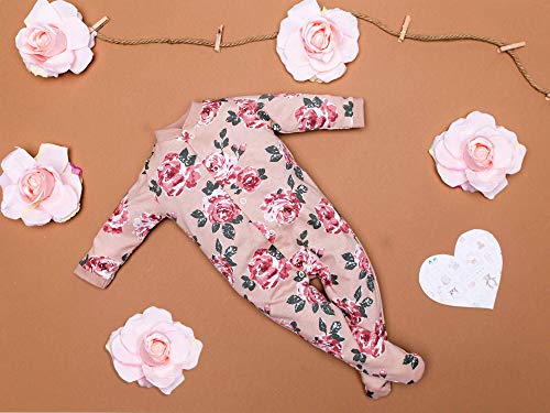 Sibinulo Bambino Bambina Pagliaccetto con Piedini Antiscivolo per Bambino, 18-24 Mesi, Set 100% Eco Cotone Pacco da 2 Rose Bianche e Biscotto 92