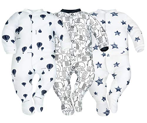 Sibinulo Bambino Bambina Pagliaccetto Pigiama con ABS Pacco da 3 Palloncini Elefanti Neri e Stelle 86(12-18 Mesi)