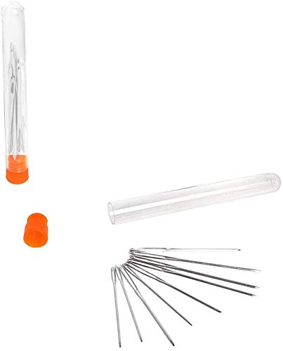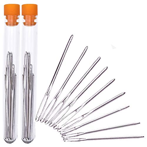 Sicai - Set di aghi da lana a punta arrotondata e cruna larga, colore: argento, 2 set da 9 pezzi (18 aghi in totale)