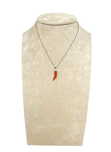 Sicilia bedda - Collana in Argento 925 con Ciondolo Corno in Corallo Rosso del Mar Mediterraneo - Prodotto Ralizzato a Mano