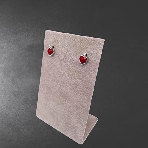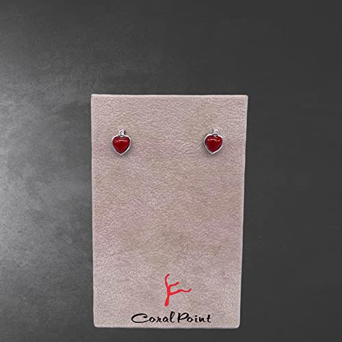 Sicilia bedda - Gioielli in Corallo Rosso del Mediterraneo e Zirconi - Argento 925 - Prodotto Realizzato a Mano (Orecchini Cuore con Zircone Singolo)