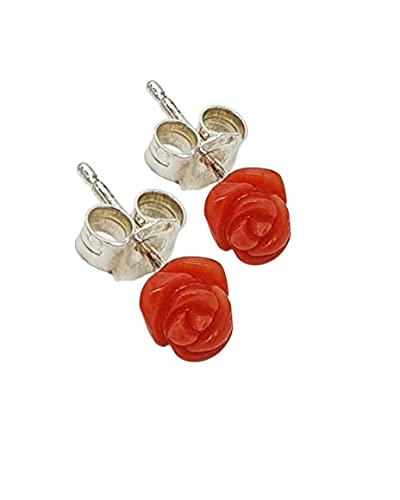 Sicilia Bedda - Orecchini a forma di Rosa in Corallo Rosso del Mediterraneo e Argento 925 - Prodotto realizzato a Mano