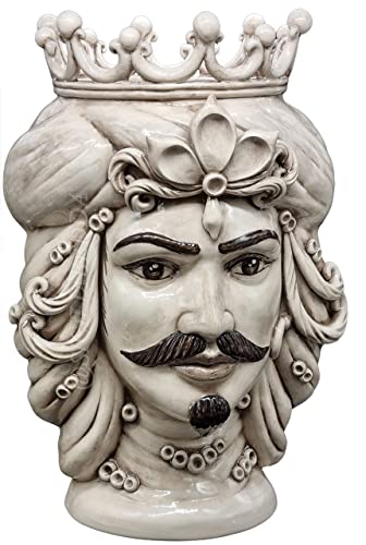 Sicilia bedda - TESTE DI MORO IN CERAMICA DI CALTAGIRONE - Realizzate a Mano - Altezza 43 Centimetri - Alta qualità Siciliana (Testa di Moro Uomo)