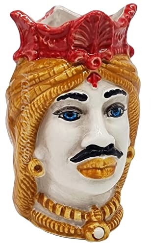 Sicilia bedda - Teste di Moro Siciliane Ceramica di Caltagirone - Altezza 13 Centimetri - Arredo Casa (Afro Uomo)