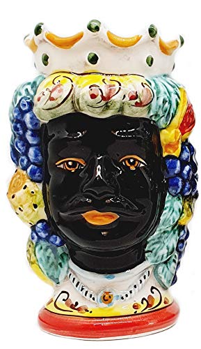 Sicilia bedda - Teste di Moro SICILIANE in Ceramica di CALTAGIRONE - Realizzate a Mano - Altezza Centimetri 18 (Saraceno, Corona Gialla)