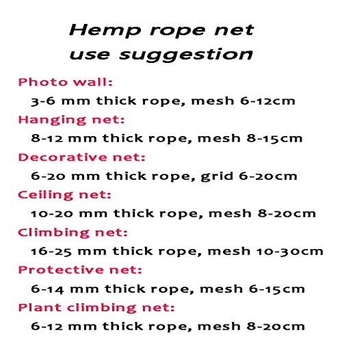 ★.Canapa rete di sicurezza - Lo spessore è di 12 mm corda / 0.47IN.La spaziatura è 10cm / 3.94in.adattamento di sostegno, se avete domande o necessità, si prega di contattarci via e-mail.