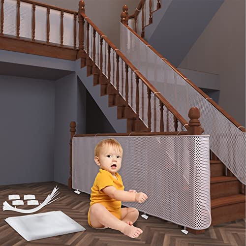 Rete di Sicurezza per Bambini, Rete di Sicurezza per Balconi e Scale, 300Lx90H CM Regolabile Robusto Rete di Protezione per Ringhiere per Scale per Bambino Animali Domestici e Giocattoli, Bianco