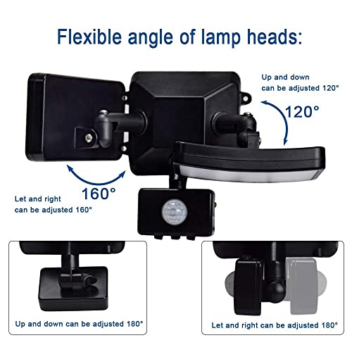 ✔ 【LED eccellente】 I chip LED sono distribuiti uniformemente su questa luce del sensore di movimento. L'angolo di uscita della luce di ciascuna testa è di 145° e l'angolo del fascio luminoso di due teste è di 190°. C'è una luce bianca morbida con una luminosità fino a 1600 lm. Con il chip economico e le buone prestazioni di dissipazione del calore, puoi ridurre i costi di illuminazione e la frequenza di sostituzione della lampada proteggendo l'ambiente.