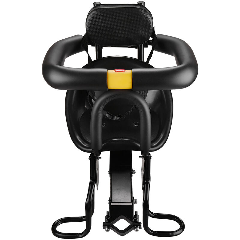 Questa e una sella per bici di sicurezza per bambini composta da un sedile in plastica solida con schienale e staffa in lega di alluminio resistente, abbastanza stabile da trasportare un bambino. Con questa sella puoi portare i tuoi bambini in bicicletta con te, il che e abbastanza sicuro, comodo e divertente. Caratteristiche: Realizzata in plastica di qualita leggera e difficile da rompere, la solida staffa in metallo mantiene il sedile uniforme e stabile. Con un guardrail di sicurezza avvolto da un morbido cuscino e una cintura di sicurezza per garantire la sicurezza, fornendo la massima protezione al bambino. Design ergonomico con morbido schienale imbottito e pedali regolabili che possono essere allungati regolando il luogo di installazione, comodo per il bambino su cui sedersi. Viene fornito con le parti intere e gli strumenti di installazione, facile da montare e installare. Adatto per bambini da 8 mesi a 7 anni sotto i 25 kg / 55 libbre e compatibile con il tubo della bici in