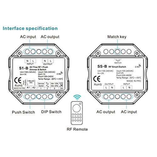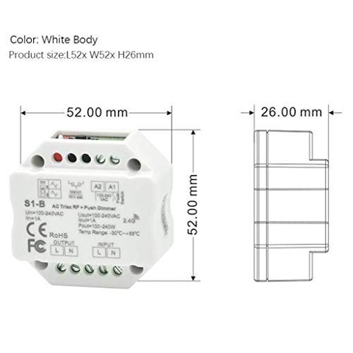Dimmer RF a taglio di fase AC con funzione push-dim.