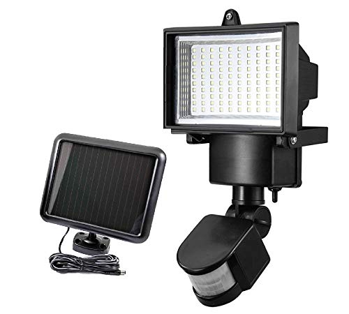 BU-KO La luce di sicurezza alimentata da energia solare si spegne automaticamente quando si sente il movimento di qualcuno che guida alla tua casa o cammina verso la porta. La luminosa lampada da 10 watt di quarzo può essere regolata per rimanere da 5 secondi a 2 minuti rispetto all'ultimo movimento rilevato. Questa luce di sicurezza a energia solare è perfetta per aree senza prese, come un capannone, una piscina o un cortile, per rilevare il movimento su un raggio di 180 gradi fino a 18 metri!