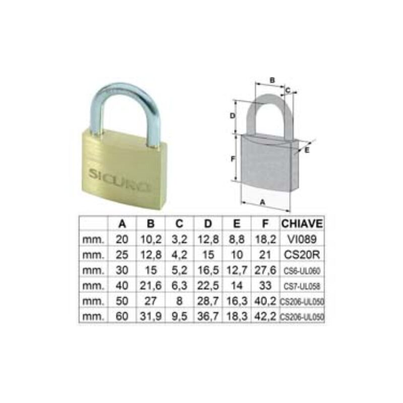 Mm.30 kb corpo in ottone lucido, arco in acciaio temperato cromato, dotazione 3 chiavi Categoria merceologica: Lucchetti e accessori - Sicurezza - Lucchetti ad arco